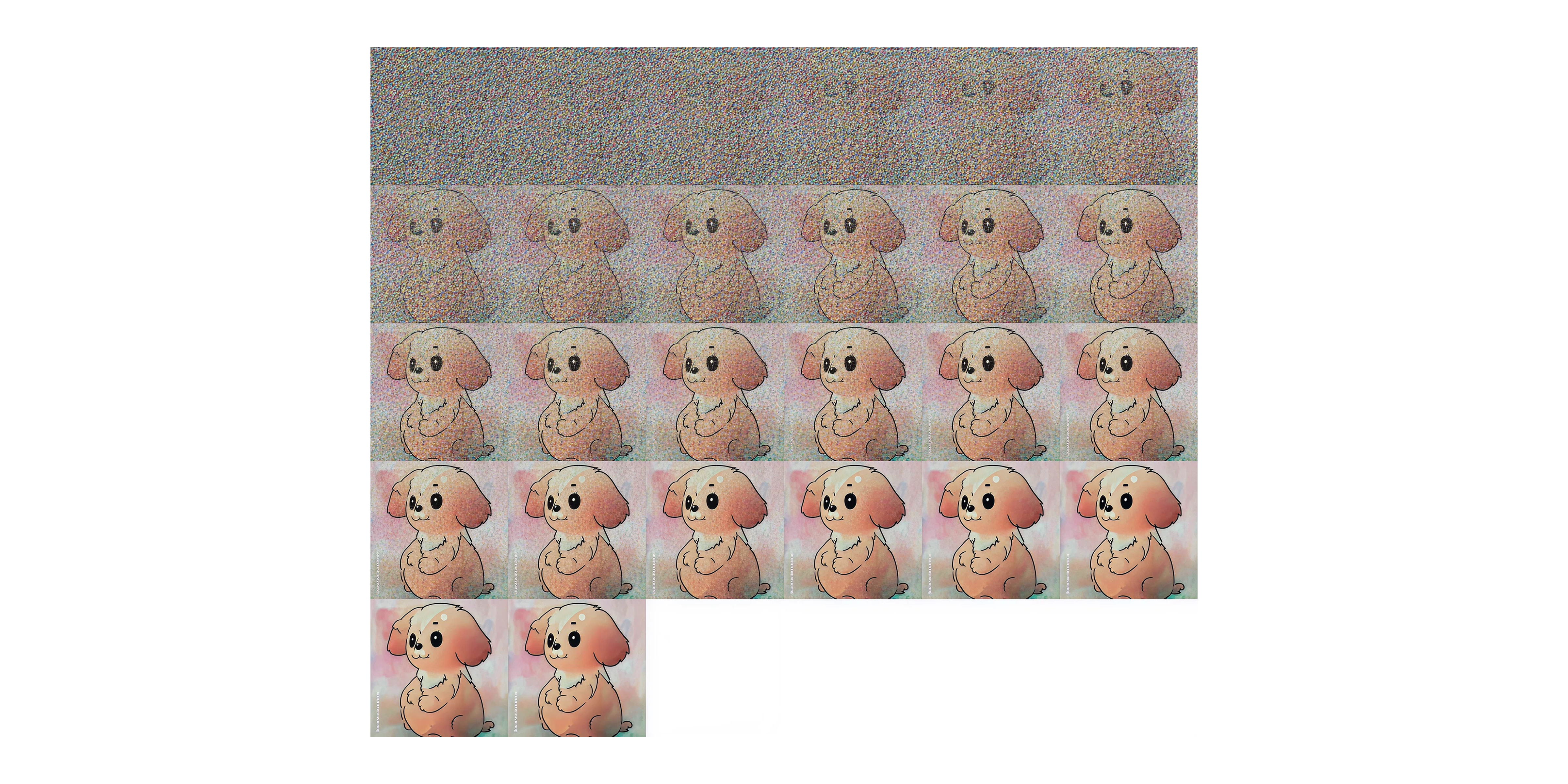 - 반복 연산: 이미지 한 장을 생성하기 위해 동일한 연산을 여러 단계에 걸쳐 반복합니다.