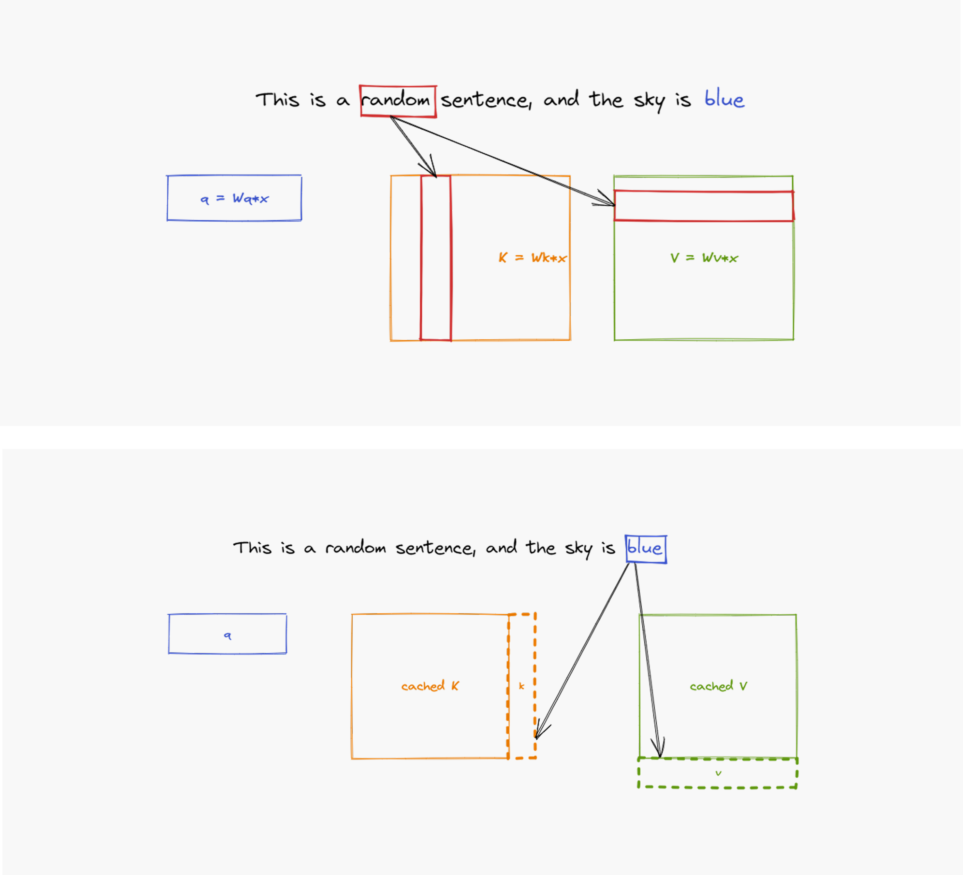 [그림 1]: 레이어마다 각 토큰의 연산을 캐시에 저장해 다음 토큰 연산 시 재연산하지 않도록 함