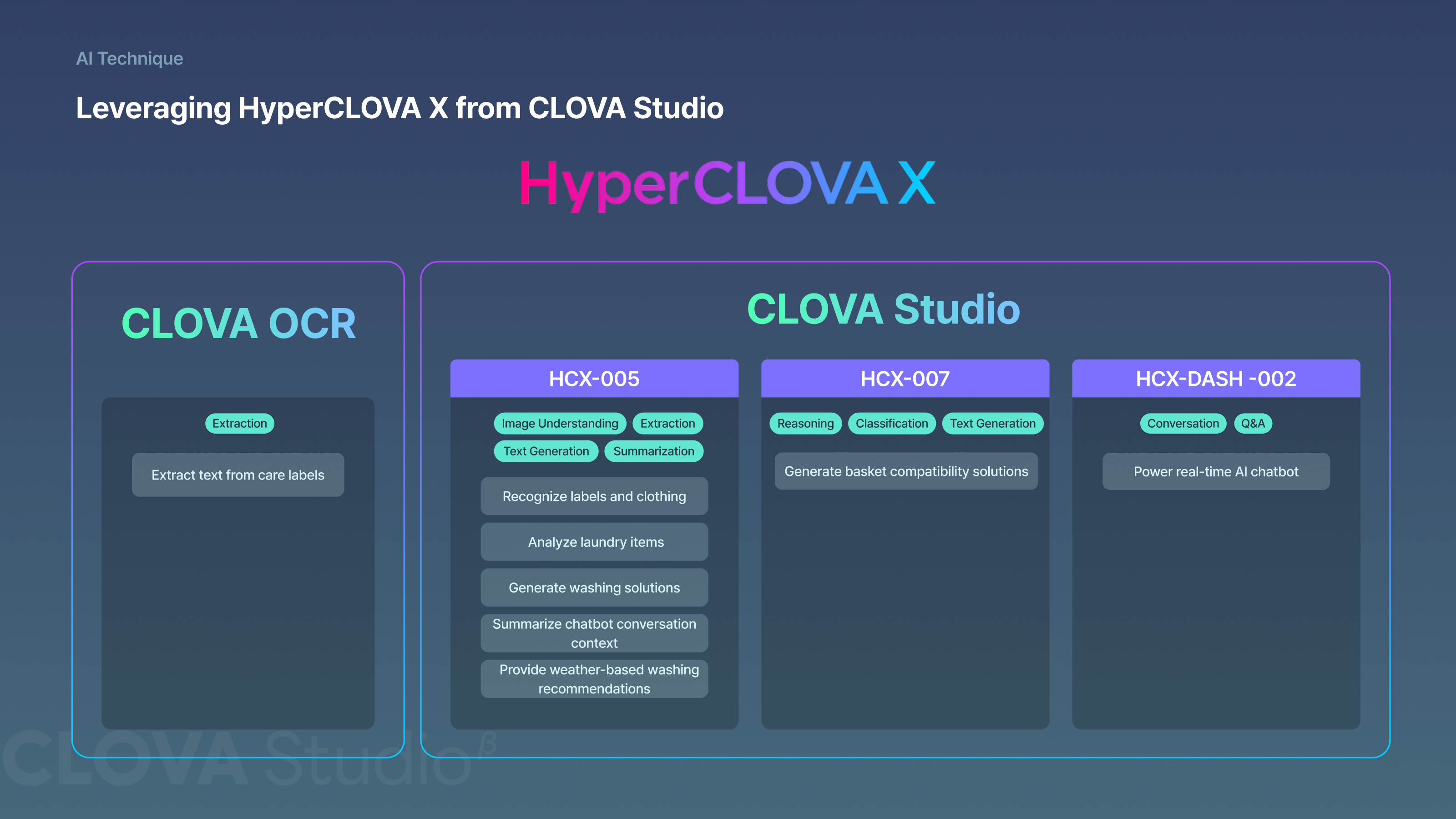 The Laundreader team’s mission to create “a life without washing mistakes” shows how AI can be woven into everyday life to solve real, relatable problems. Using CLOVA Studio’s easy development tools and quick testing process alongside HyperCLOVA X’s models, they built a service that’s accurate, fast, and user-friendly—covering everything from care label recognition to chatbot responses.
