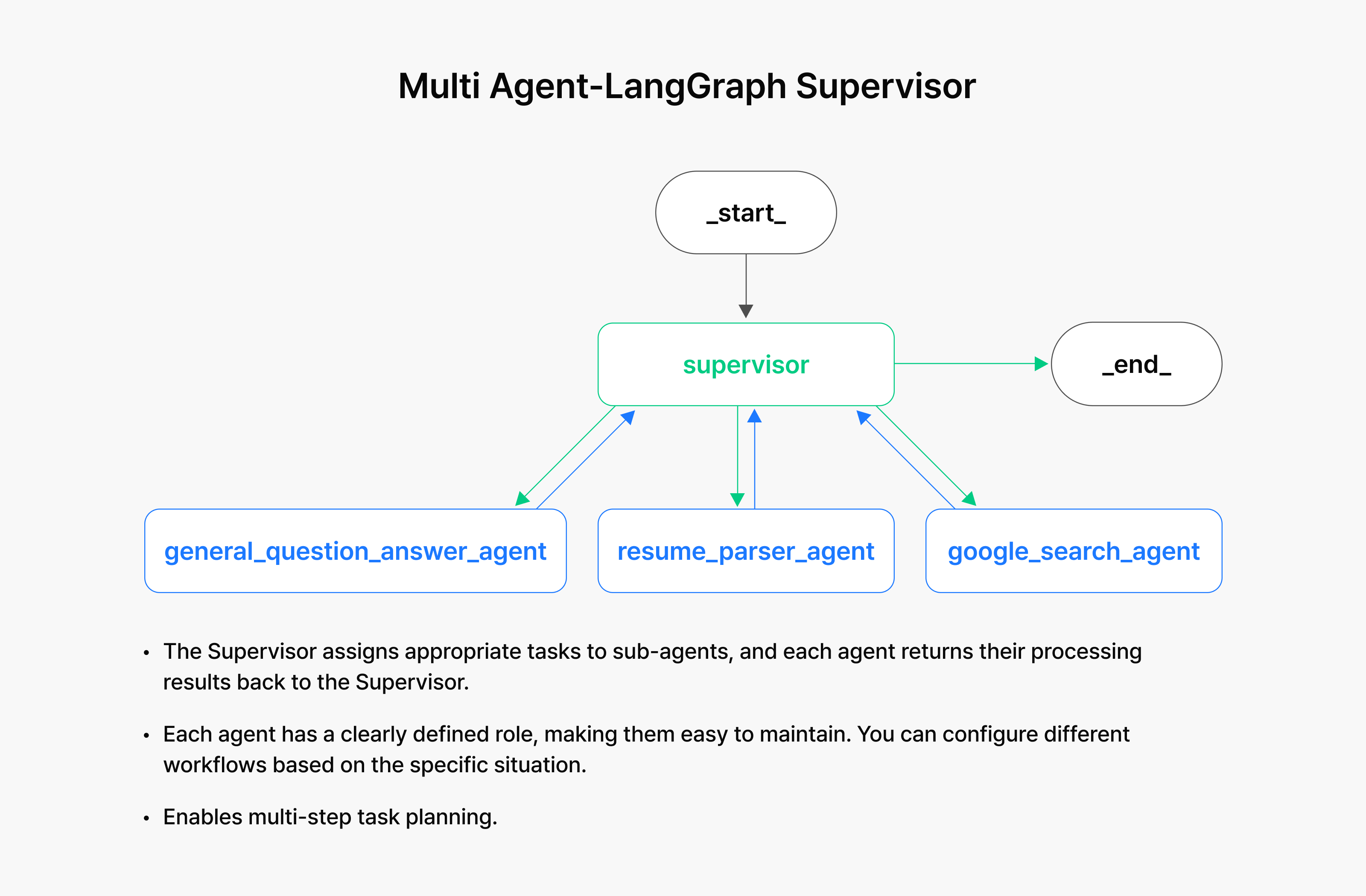 MCP transforms this process. You can add or replace tools using standardized methods for flexible configuration. For example, you can use LangGraph to design agent workflows, with the MCP client communicating internally with external MCP servers for web and document search.