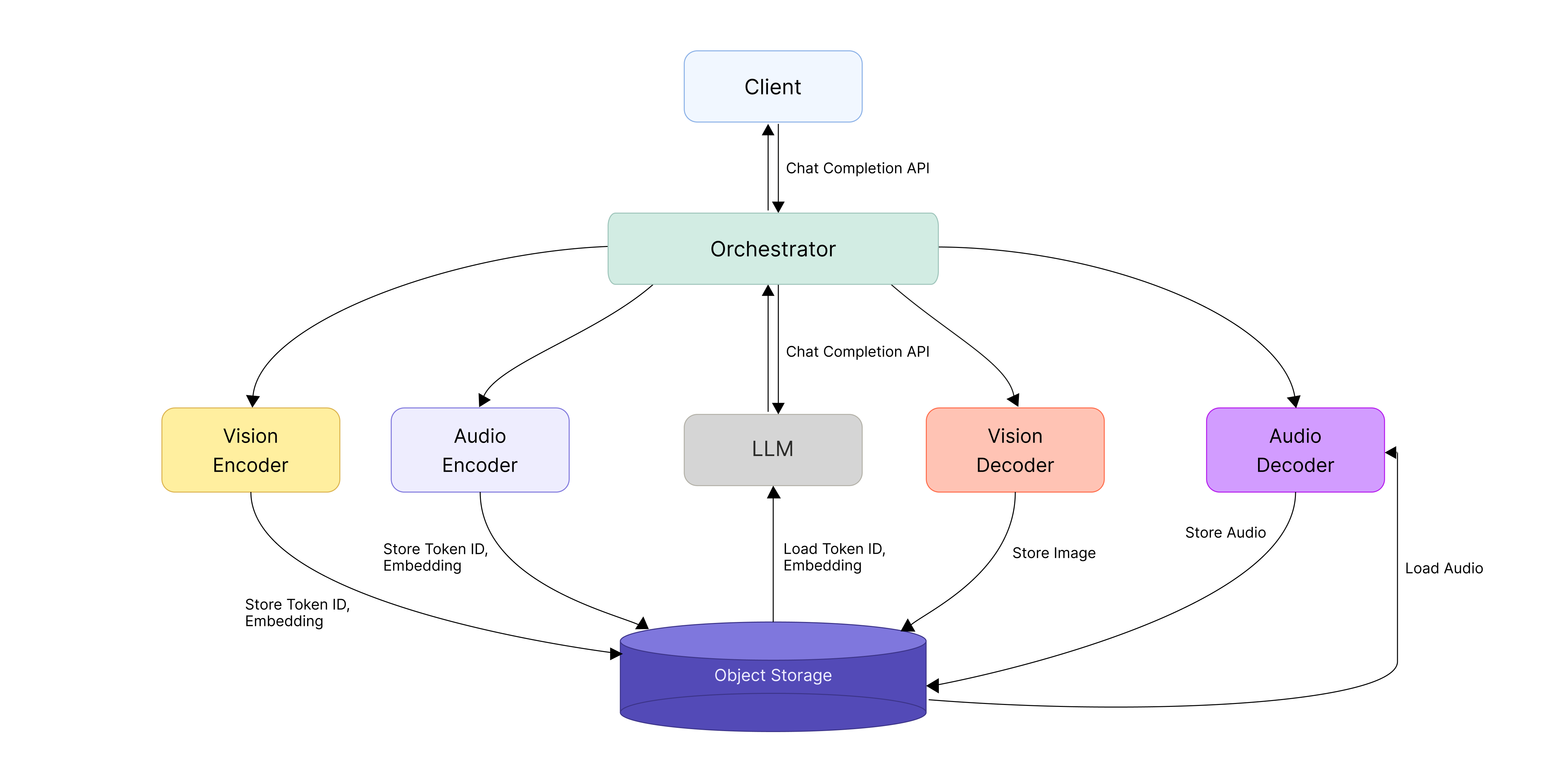 For the LLM server, we prioritized compatibility and adopted the OpenAI Chat Completion API as-is—the de facto standard across the industry. We also made the Orchestrator follow the same spec so that requests could pass between client and LLM with no extra translation. The Orchestrator’s job, then, is to call the Encoder and Decoder based on the input data format and assemble each stage’s results back into the OpenAI Chat Completion API format.