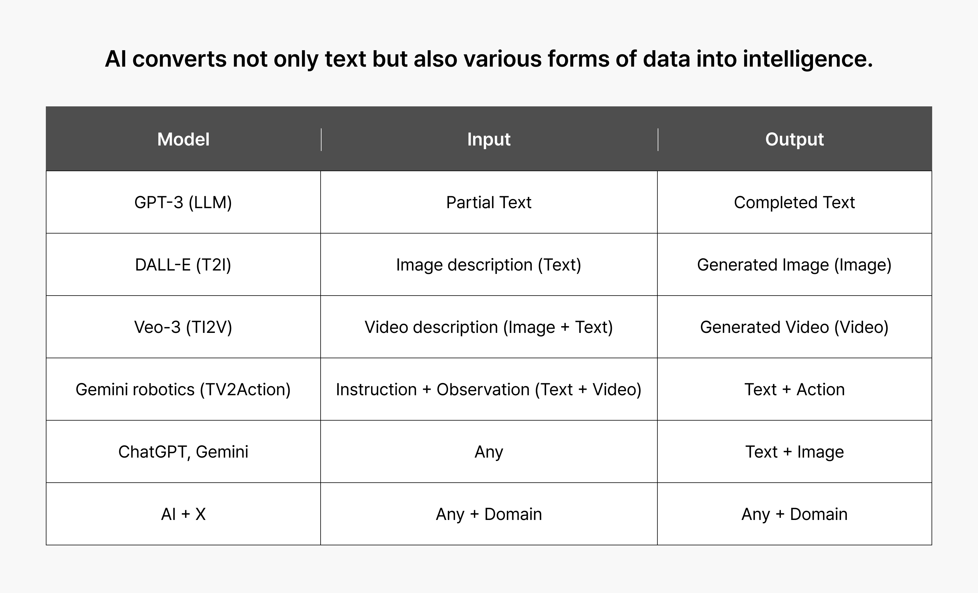 AI is now taking the same journey. Omnimodal AI processes images, sounds, videos, and even physical environments simultaneously, not just text. Just as we rely on multiple senses to understand the world, omnimodal AI learns through multiple modes from the very beginning, evolving into an intelligence that can truly interact with its environment.